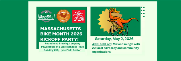 Join us for a ride to kick off Mass Bike Month, hosted by Mass Bike, our great state-wide biking advocacy group. We’ll be going to Roundhead Brewing Co. in Hyde Park celebrate with other bikers. The plan is to leave from the Newton Library on Homer St. in Newton Center at 3:00pm. We’ll arrive at Roundhead Brewery at approx. 4:15, meet up with other bike enthusiasts from the Boston area and enjoy a beverage and a snack for a little break, then head back to Newton, arriving back at the library by 6:30pm. Mass Bike requests that you please register (https://www.massbike.org/bike_month_kickoff_2026) , so they will have an idea of how many riders to expect.